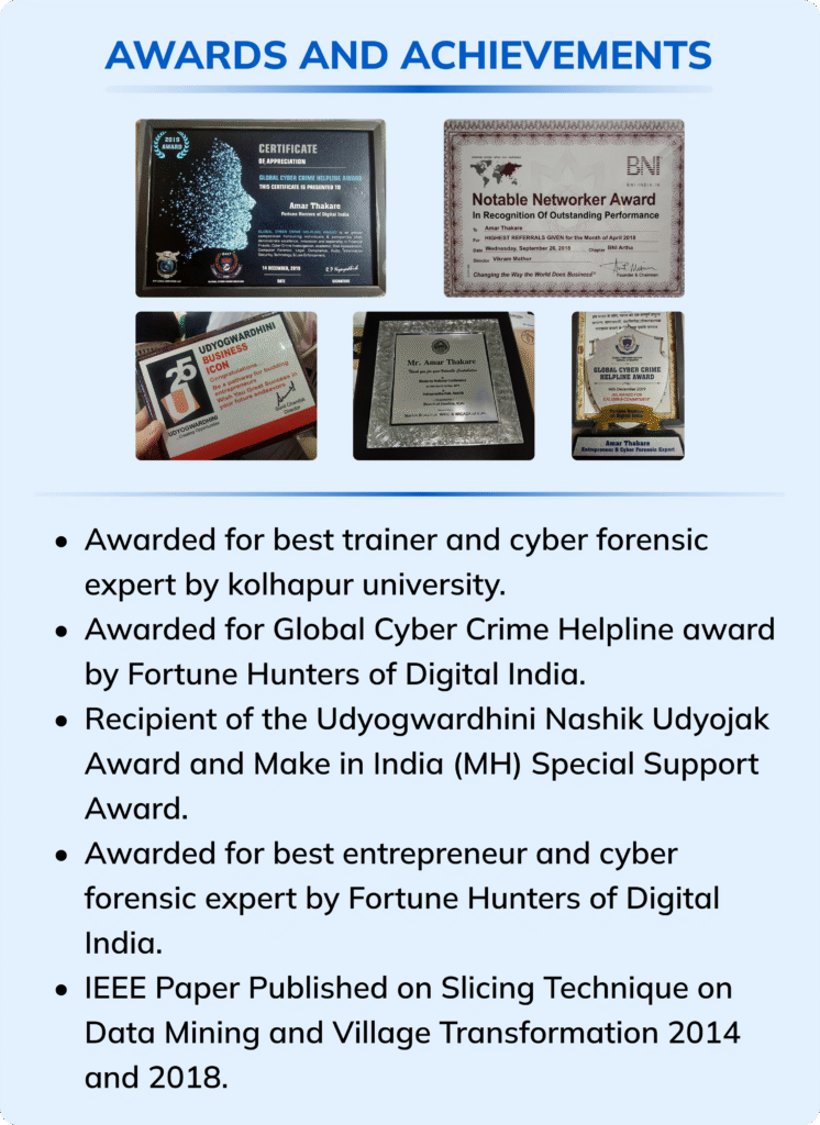 With over 16 years of hands-on experience in cybersecurity and risk management, Amar Thakare has built a career rooted in precision, leadership, and real-world impact. From solving complex cybercrime cases to advising financial institutions and mentoring young professionals, Amar’s career is a blend of technical expertise and visionary leadership.